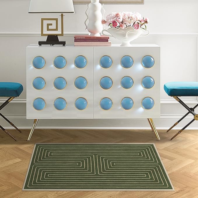 RUGGABLE x Jonathan Adler Machine Washable Modern Area Rug – Labyrinth Fern Green 2x3, Stain-Resistant, Non-Slip – Small Rugs for Living Room, Bedroom, Hallway, Entryway & Bathroom–with Cushioned Pad