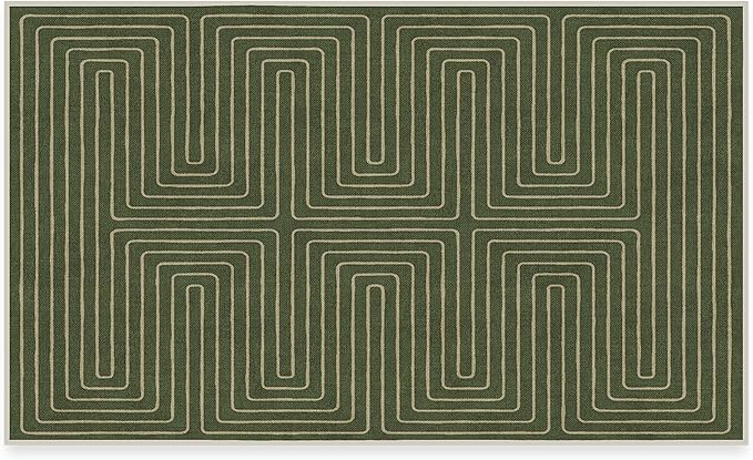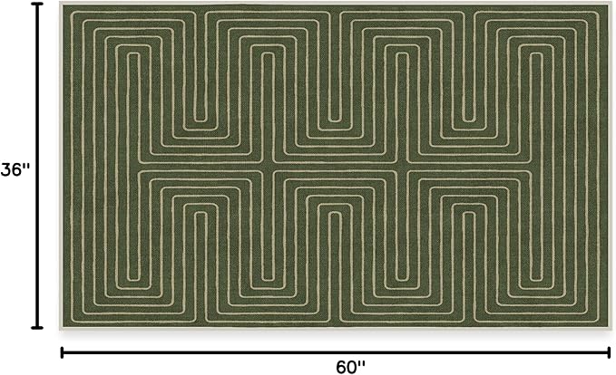 RUGGABLE x Jonathan Adler Machine Washable Modern Area Rug – Labyrinth Fern Green 3x5, Stain-Resistant, Non-Slip – Small Rugs for Living Room, Bedroom, Hallway, Entryway & Office–with Cushioned Pad