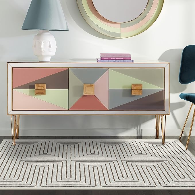 RUGGABLE x Jonathan Adler Machine Washable Modern Area Rug – Labyrinth Camel/Ivory 4x6, Stain-Resistant, Non-Slip – Medium Rugs for Living Room, Bedroom, Hallway, Entryway & Office–with Cushioned Pad