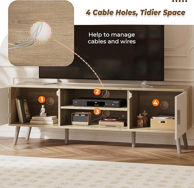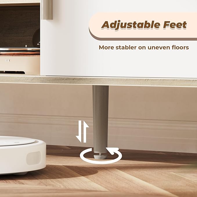 - 【LONG LASTING SUPPORT】 6 solid wood feet give this tv console a strong support (2 middle adjustable feet can be adjusted to keep balance on uneven floors). The overall body adopts sturdy P2 particleboard, so this TV table stand can last for years to come