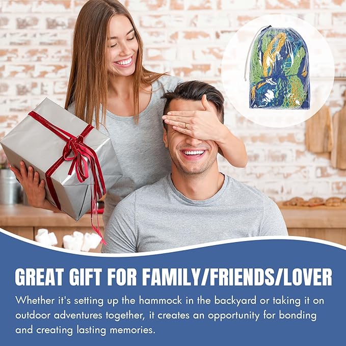 - Perfect extra size hammock gift: Decoration and practicality good of both worlds and the carry bag composed of half PVC and half cloth, Easy to carry anywhere, Enjoy happy hour with your family, friends, and lover.