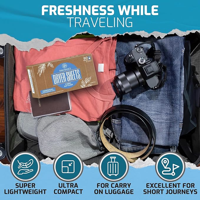 - ANTI STATIC TECHNOLOGY: This pack of 80 dryer sheets from Raw Basics actively works to stop clothes clinging together; The secret is how our anti static dryer sheets release a fine layer of fabric softener, coating each garment individually; Experience smoother fabrics that cling less with our advanced non toxic dryer sheets