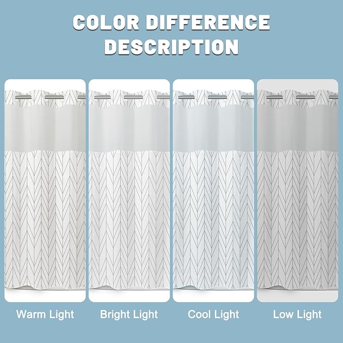- Easy to Clean & Care: The 100% polyester shower curtain with snap-in liner is machine washable. Maximum ironing temperature: outer curtain 110°C/230°F, liner 70°C/160°F Note: Simple ironing can create a better visual experience