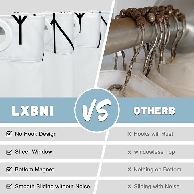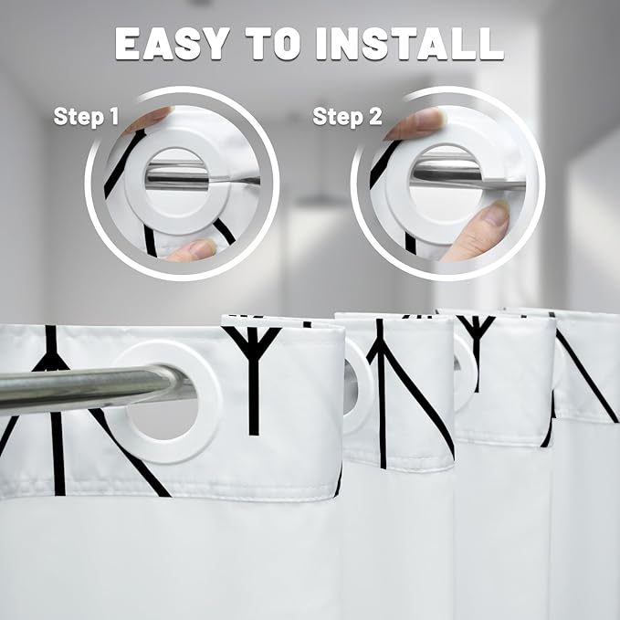 - NO Hook Design: set of shower curtain & snap on/off replaceable liner: no hooks needed design with built-in rings for easy on and off. snap-in waterproof fabric liner is removable when replacing