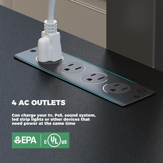 - TV Stand with Charging Station and Wire Management: This entertainment center with power outlets built-in 4 standard plug outlets, so it can meet the needs of different equipment, which is convenient to charge your TV, DVD, WiFi router, and etc. The TV mount offer wire management to keep your cords from getting tangled and make it easy to plug in all of your devices