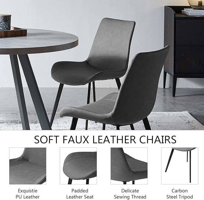 - Stylish Round Table Set: This modern dining set features a stylish round table crafted from sturdy MDF material with a unique textured finish, along with 2 comfortable PU leather chairs with ergonomic curved backs.