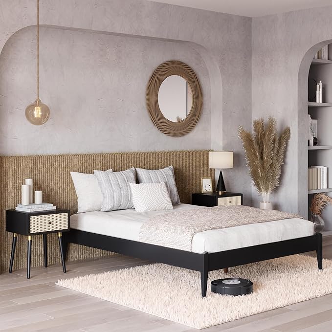 - STYLISH PIECE FOR EVERY BEDROOM: This queen bed frame black is a marriage to your bedroom since it strikes the balance between modern and casual design, but maintains an elegant and luxurious aura; With a clean matte black finish, this wooden bed frame keeps things serenity and comfort, whether you choose a sleek and contemporary style or a warm room concept