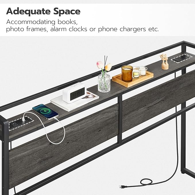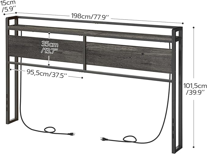 HOOBRO King Size Headboard, Headboard with 2 Outlets and 4 USB Ports, Adjustable Height, Storage Rack, Sturdy and Stable, Easy Assembly, Charcoal Gray and Black