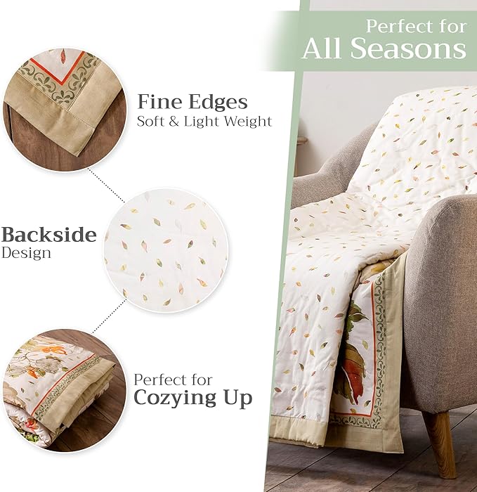 - Package Includes: 1 throw blanket 50x60 inches, featuring a 100% cotton exterior and plush polyester filling. Designed in Europe and expertly crafted in India, it offers lightweight warmth and breathable comfort