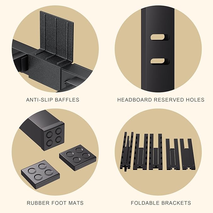 - Noise Elimination: Designed with noise reduction in mind, our twin XL size bed frame features non-slip gaskets that prevent mattress movement and eliminate annoying squeaking sounds during the night.