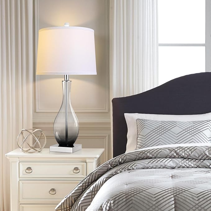 - 【MODERN LIGHT LUXURY STYLE DESIGN】-Transparent glass and gradient color bottom design, together with the metal texture base, create a light, trendy, and elegant atmosphere. The elegant lines of the lamp highlight your taste. This table lamp is a modern decorative piece that goes perfectly with your furniture.