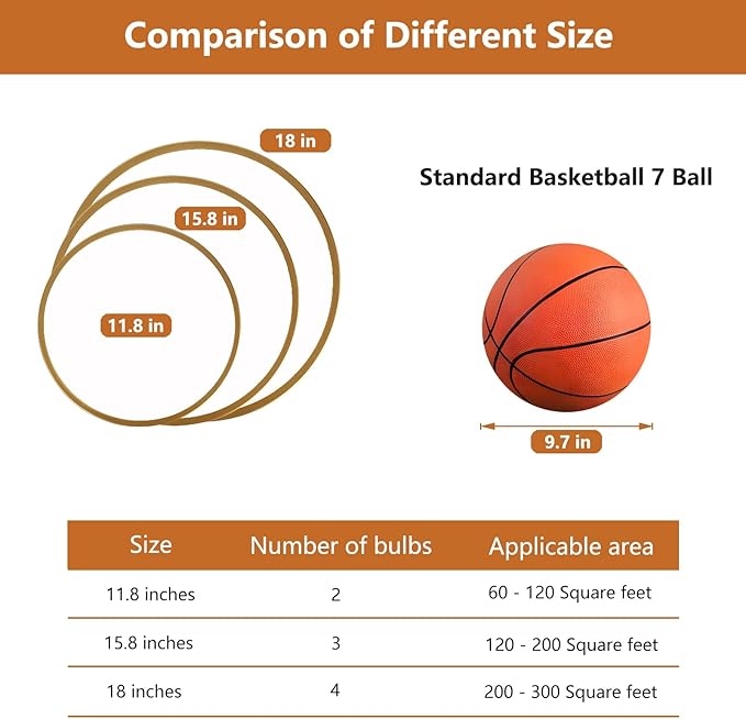 - Size and material:The Light Fixture diameter is 15.8in(40cm). The Fixture Height is 3.54in(9cm). Made of metal and acrylic, has well resistance, anti-corrosion and heat dissipation