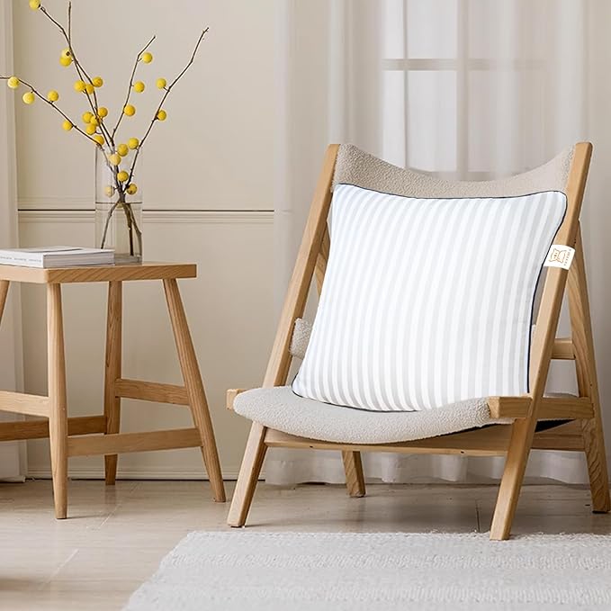 Pillows Insert 22'' x 22'' Set of 2, Decorative Throw Pillows with Luxury Silky Covers for Indoor Couch, Sofa or Bed Decors, White Striped Cushion Sham Stuffer