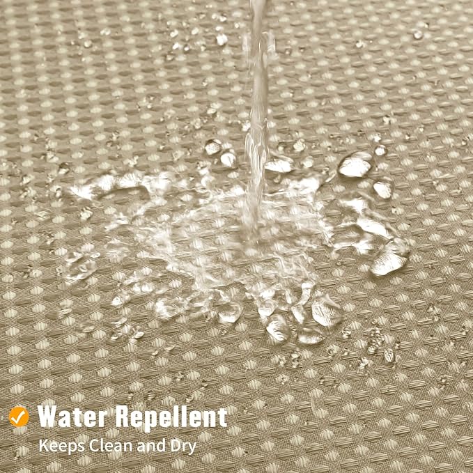 - Heavy Duty Fabric - High quality waffle woven fabric & waterproof snap-in liner create hotel grade effect for this beige shower curtain, so that it could keep in place. The quality curtain is elegant and soft, which can deliver a spa-Like bathroom environment.