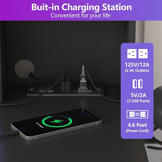 - 【Charging Station & Hair Dryer Rack】This make up table comes with a power strip that includes 2 standard plug sockets and 2 USB ports, allowing you to sit at your vanity and use your hair dryer or curling iron with the power strip within easy reach. It also provides great convenience for charging mobile phones, tablets, headphones or other mobile devices.