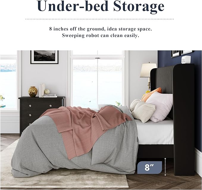 - Special Feature : No Box Spring Needed, Squeak Resistant, Upholstered, Vertical Channel, Wingback Headboard
