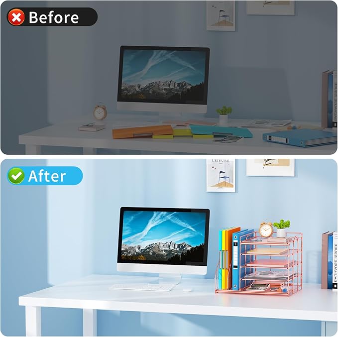 - 【Ideal Desk Organizer】Marbrasse newly releases the desk file organizer! The humanized office organization owns 5 sliding trays + 2 Magazine Holders which tidies up your desktop and is convenient to your office! All the designs specialized to comply with your office, such a perfect supplies desk organizer must be the best choice for your office accessories