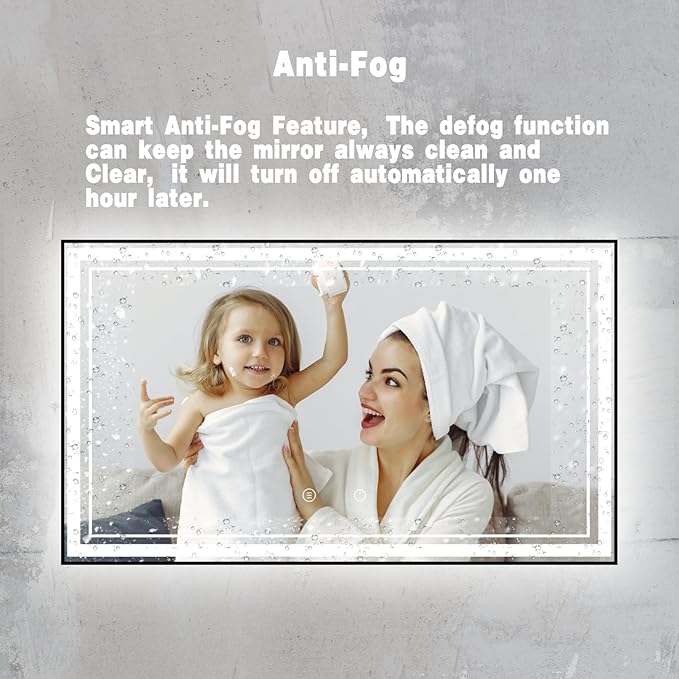 - Anti-Fog & Water-Proof: osemy LED bathroom mirrors can disperse the water vapor on the mirror surface quickly and provid a clear and transparent state with the Anti-Fog & Water-Proof function. No need to wipe the mirror after the shower.