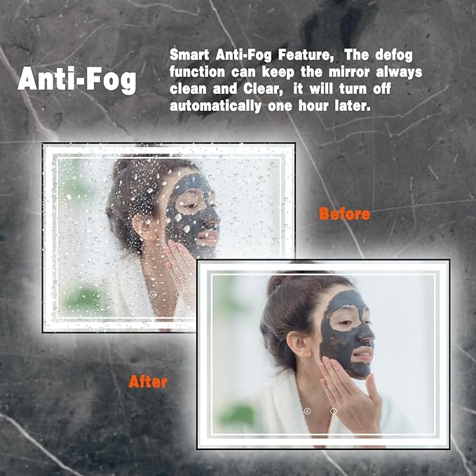- Anti-Fog & Water-Proof: osemy LED bathroom mirrors can disperse the water vapor on the mirror surface quickly and provid a clear and transparent state with the Anti-Fog & Water-Proof function. No need to wipe the mirror after the shower.