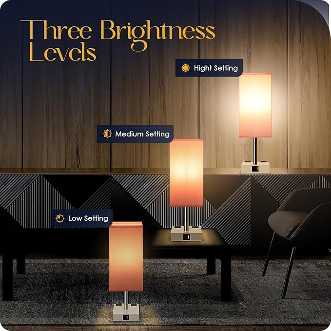 - 3-way Touch Control Dimmable: These table lamps provide three levels of brightness (low-medium-high) to meet your various lighting needs. Whether you want to set the mood, add decorative accents, or create a bright workspace, these lamps have you covered. You can easily adjust the brightness by tapping the metal base with the high-quality sensor