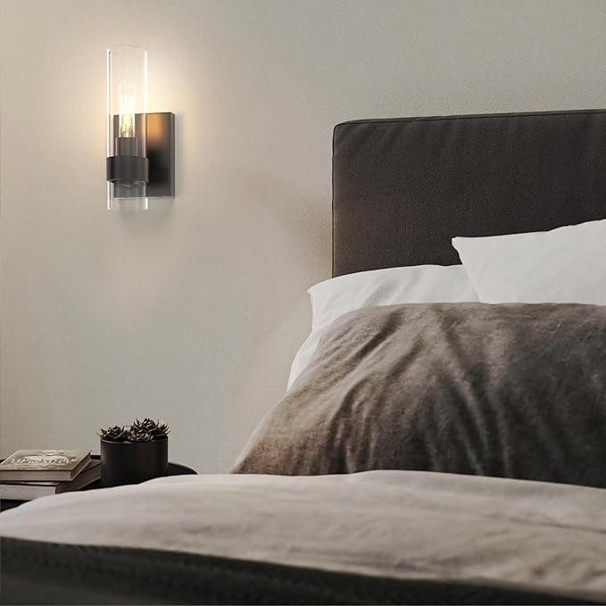 - 【Upgraded Material Selection】This wall sconce is ETL certified, you can buy with confidence. The thickened clear cylindrical glass is repeatedly polished through multiple processes, with delicate texture and unbreakable. The powder coating on the metal surface provides good waterproof and rustproof function, which can be installed in any dry or wet place.