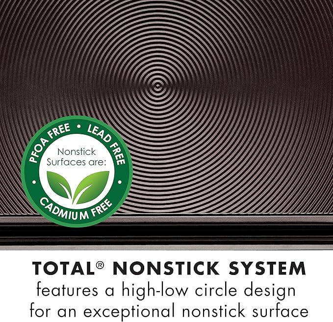 - SUPERIOR TECHNOLOGY: TOTAL Food Release System features metal-utensil-safe premium nonstick on raised circles for superior baking release and effortless cleanup
