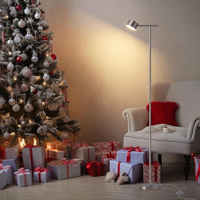 Floor Lamp for bedroom, 3 Color Temperatures Floor Reading Lamp with Flexible Lamp Cap, Modern Bedroom Floor Lamps for Living Room, Simple Design Standing Lamp for Office Working Study Silver