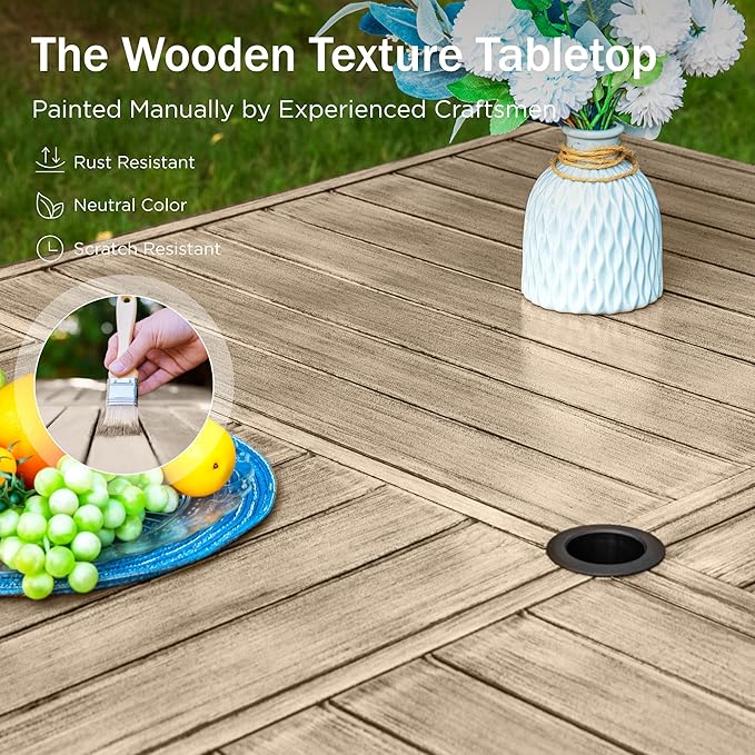 - ๐ฆ๐พ๐๐ฎ๐ฟ๐ฒ ๐ง๐ฎ๐ฏ๐น๐ฒ ๐๐ถ๐๐ต ๐๐ฑ๐ท๐๐๐๐ฎ๐ฏ๐น๐ฒ ๐จ๐บ๐ฏ๐ฟ๐ฒ๐น๐น๐ฎ ๐๐ผ๐น๐ฒ: Our brown metal dining table is 60" x 60", which can accommodate up to 8 people for dining, family or friends party. The 1.57"-1.9" umbrella hole design at the center part provides more practical uses in the daily life, and you can choose to insert the umbrella or not