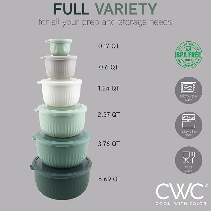 COOK WITH COLOR Prep Bowls with Lids- Wide and Deep Nesting Plastic Small Mixing Bowl Set with Lids, 12 Piece Set - Deep Bowls, Sage