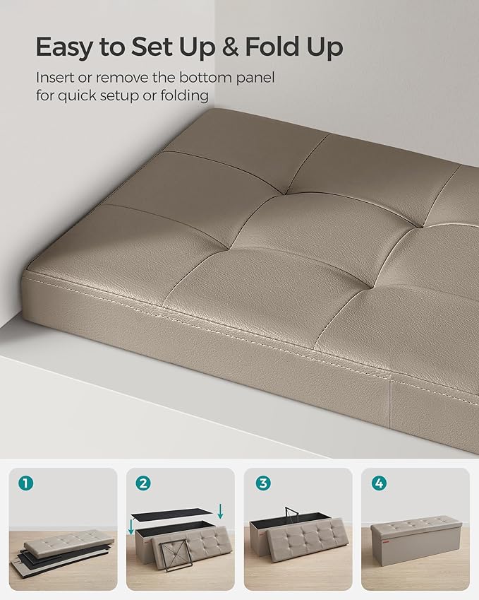 - 【QUICK ASSEMBLY, EASY FOLDAWAY】This storage ottoman from the SONGMICS MAZIE Collection has a foldable design that allows quick setup in seconds by simply inserting the bottom panel. Easily fold and store it under the bed or in a closet when not in use