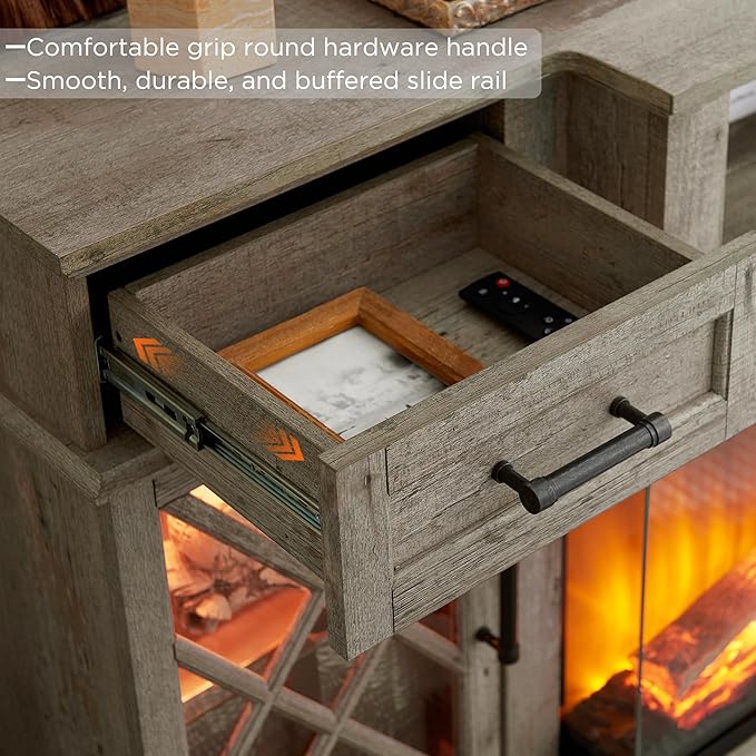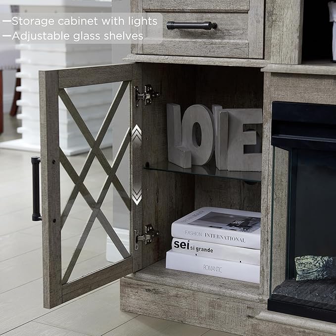 - Special Feature : 3D Side Fireplace TV Stand, Adjustable Shelf, Glass Window, Sideboard, Storage Cabinet