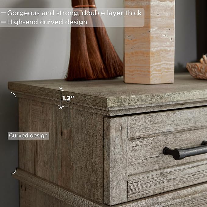 - Timeless Elegance: Elevate your living space with a farmhouse classic design that marries traditional charm and modern functionality. Admire the screen-printed decorative mullions on glass side doors and a rich woodgrain finish. The sturdy platform can hold up to 300 lbs across its double tabletop.