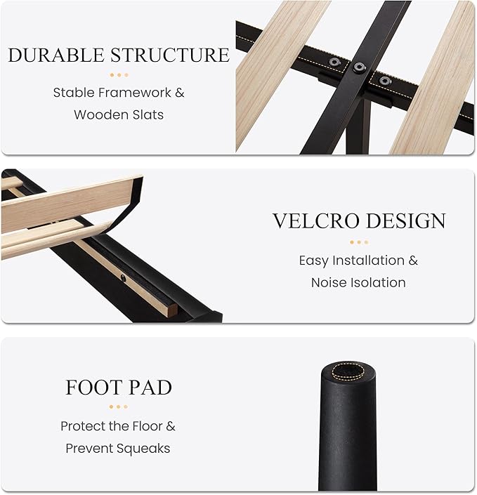 - Sturdy and Durable: Firm slats with metal support beams and legs, all components are made of sturdy materials. Weight capacity up to 800 lbs