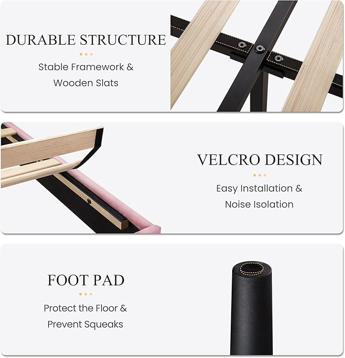 - Modern Wingback Headboard: The full bed frame is beautifully upholstered in soft velvet and features a wingback headboard design, adding a stylish touch of glamour to any home decor