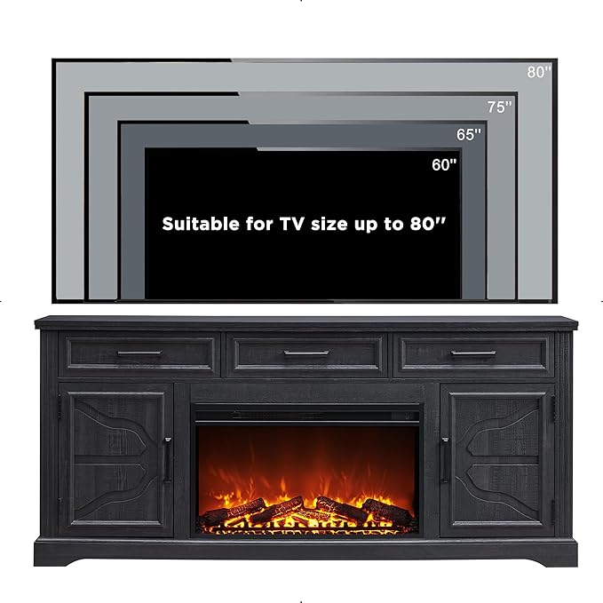 JXQTLINGMU Farmhouse Fireplace TV Stand for Up to 80 Inch TV, Entertainment Center with 30" Electric Fireplace for 65 75 Inch TV, 70" TV Stand with Storage Cabinet Drawer for Living Room (Black)