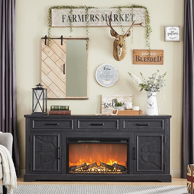 - Superior Quality: Our farmhouse fireplace TV stands are made from high-quality engineered wood, Each piece of wood is very thick and sturdy, and this storage cabinet is built to last. Its solid construction ensures stability and longevity, supporting the weight of your TV and other items on top without any concern.