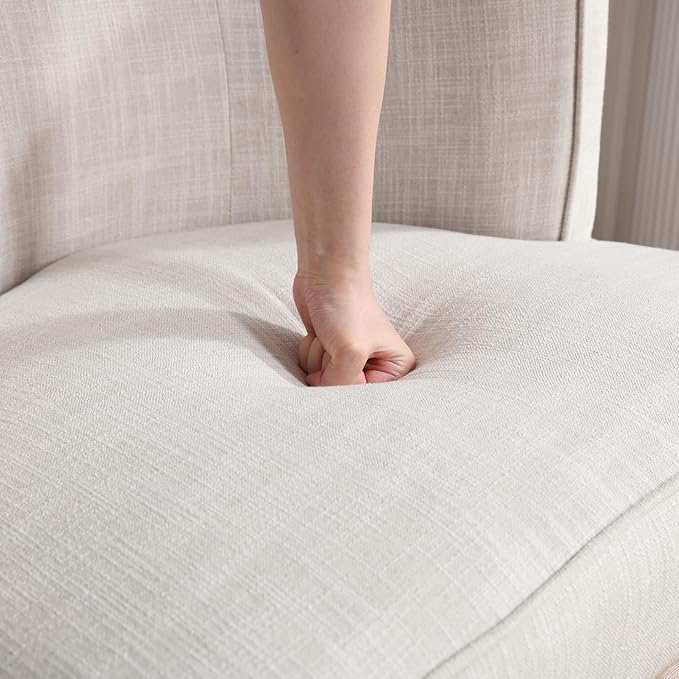 Arm Accent Chair Barrel Accent Chair with Wood Legs, Comfy Barrel Side Chair Linen Upholstered Reading Chairs with Back for Living Room Bedroom, Living Room Chair, Beige