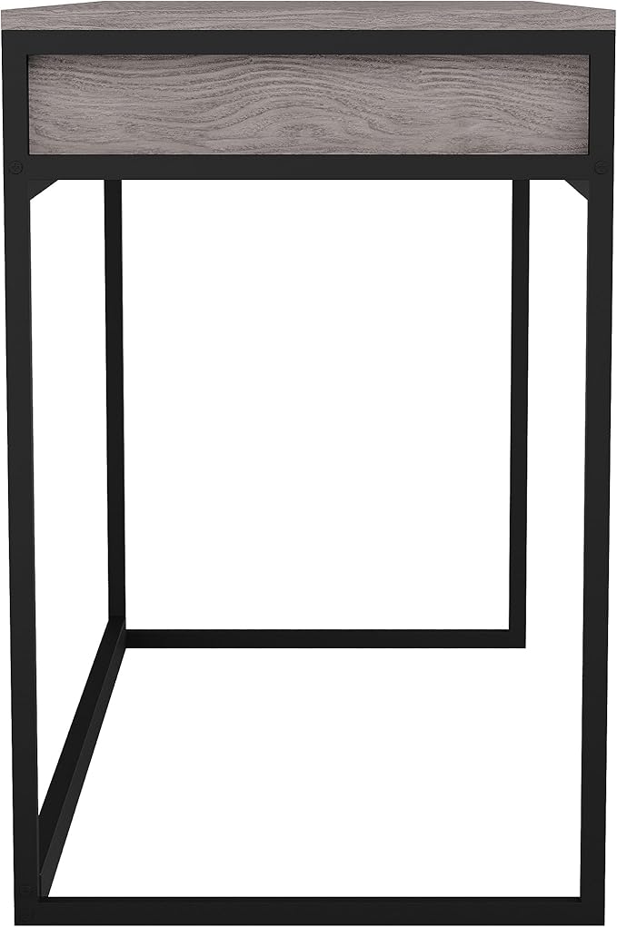 - Sturdy Engineered Wood top with three drawers in a gray melamine finish