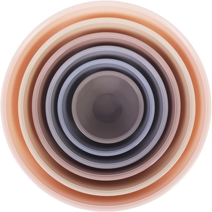 BoxedHome BPA Free Plastic Round Mixing Bowl with Lids, 12 Pack Nesting Bowls with Lids Set, Microwave and Dishwasher Safe Prep & Serving Bowls Great for Mixing, Baking, Serving (Khaki Pink, 12pcs)
