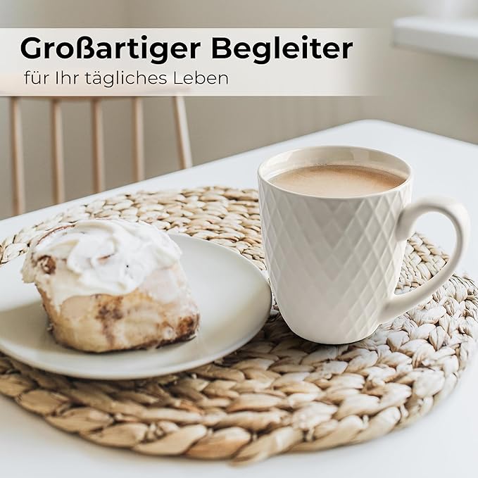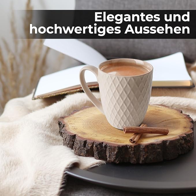 MIAMIO 6 x 14 Oz Coffee Mug Set - Modern Ceramic Matt - Palmanova Collection (Beige)