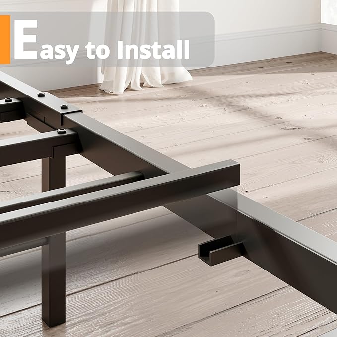 - 【Strong and Stable】The platform king bed structure is reinforced with heavy-duty metal slats, ensuring its sturdiness and durability. It provides optimum support for all types of mattresses without the need for a box spring