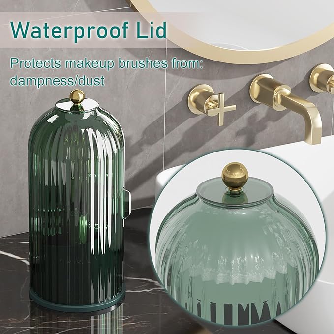GAXmi Makeup Brush Holder with Lid Cosmetic Tools Organizer 360 Rotating Waterproof Dustproof Beauty Brushes Storage for Vanity, All Green