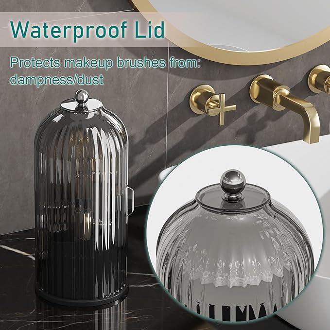 - Waterproof and Dustproof Lid -- Unlike other organizers with no lid, this makeup brush organizer with lid can offer better protection for your makeup brushes from dust and dampness.