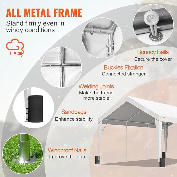 - 1. **Extra Large Carport**: Our 10 x 20 FT spacious car canopy offers ample room for vehicles, boats, cargo, and more. Perfect for outdoor activities like parties, weddings, and exhibitions, it's an upgrade to your parking space, providing shelter and versatility for any occasion.