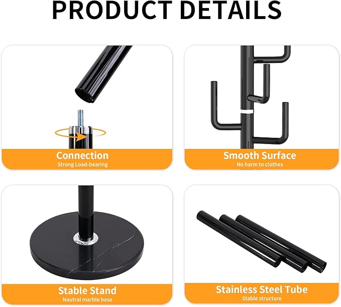 - STURDY AND STABLE: The coat stand is made of stainless steel and the main pole is support by a 2 inches diameter steel pipe. The standing coat rack is not easy to deform and has stronger bearing capacity. The coat rack freestanding adopts advanced nano-baking paint technology, with bright and smooth color
