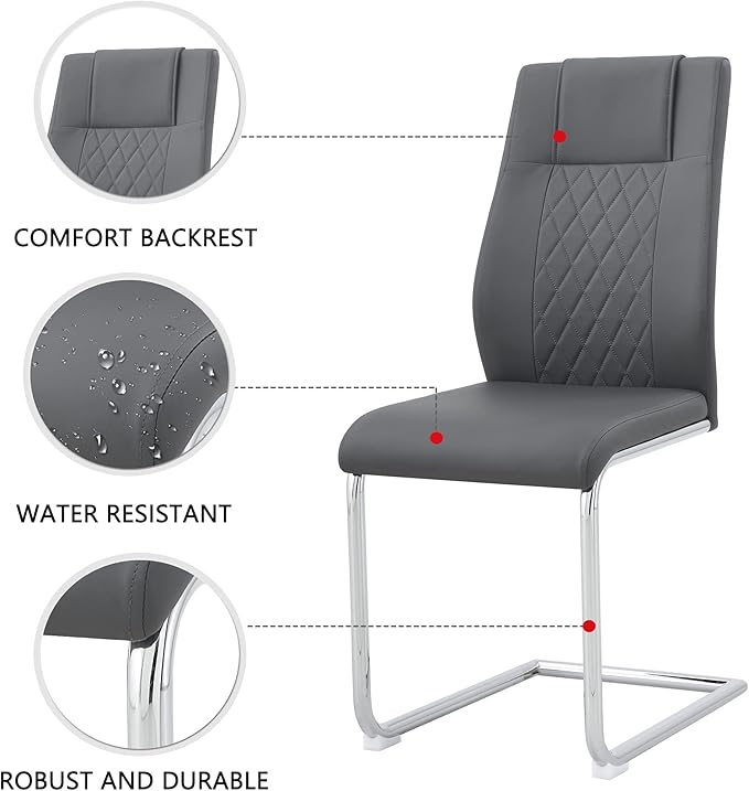 Dining Table Chairs Set for 6, Modern Rectangular Dining Room Table Set PU Leather Upholstered Dining Chairs 55" Dinner Table Set for Kitchen, Dining Room (Dining Table Set for 6, Grey)