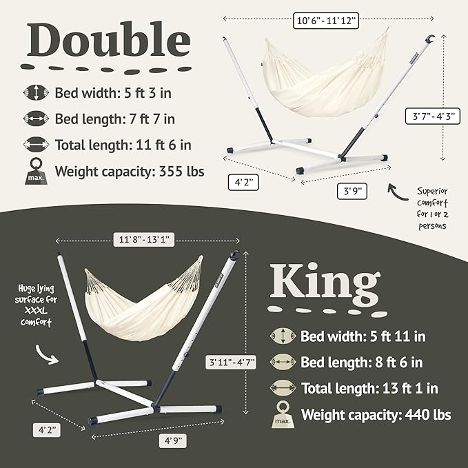 LA SIESTA® - XL King Brisa Classic Hammock & Nautico Steel Stand - Weather & Tear Resistant - Portable, Family Hammock w/Stand - Balcony Porch Garden Outdoor Indoor Hammock - Max 440 Lbs, Vanilla
