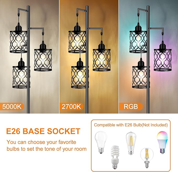 - Various Compatibility - The bright floor lamp applies 3 heat-resistant E26 standard sockets (Max. 60W), so you can use all E26 light bulbs to pair them. You can set the tone of your room by replacing diverse bulbs. (For this item the bulbs will not come included, we also have another choice that includes bulbs and a dimmable function