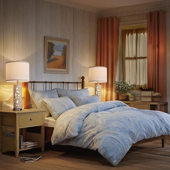 - Retro Hollow Pattern Design:This bedroom table lamp is 28 inches tall and comes in a set of 2. Crafted with care and attention to detail, a delicate floral pattern is sintered onto the ceramic lamp body, and the antique brown finish adds a touch of elegance, paired with all-natural linen tones that complement farmhouse, rustic, vintage and vintage themed interiors perfectly. Perfect for nightstands, guest rooms, couples rooms and bedrooms.