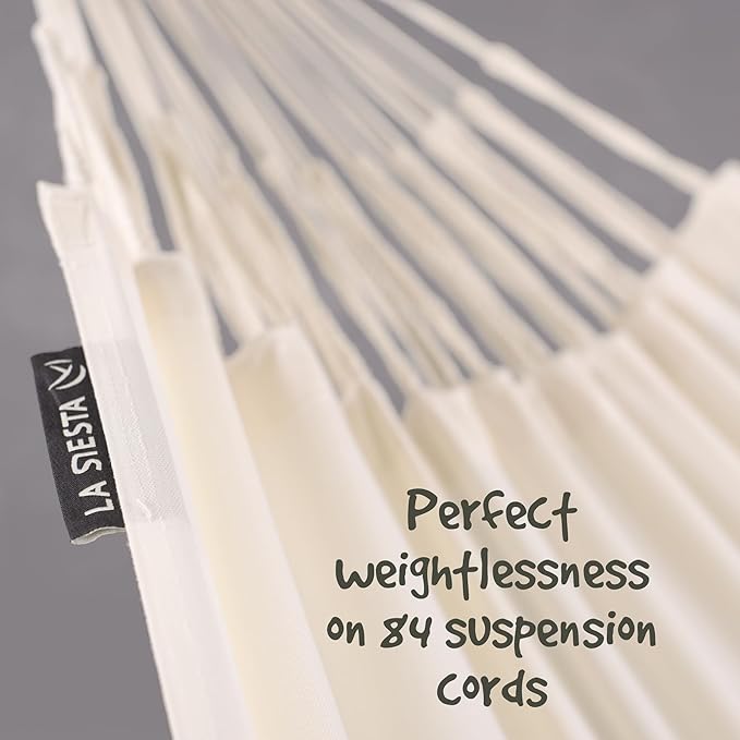 LA SIESTA® - Large Double Brisa Classic Hammock & Nautico Steel Stand - Weather & Tear Resistant Portable Hammock w/Stand - Balcony Porch Garden Outdoor Indoor Hammock - 2-Person Max 355 Lbs, Vanilla